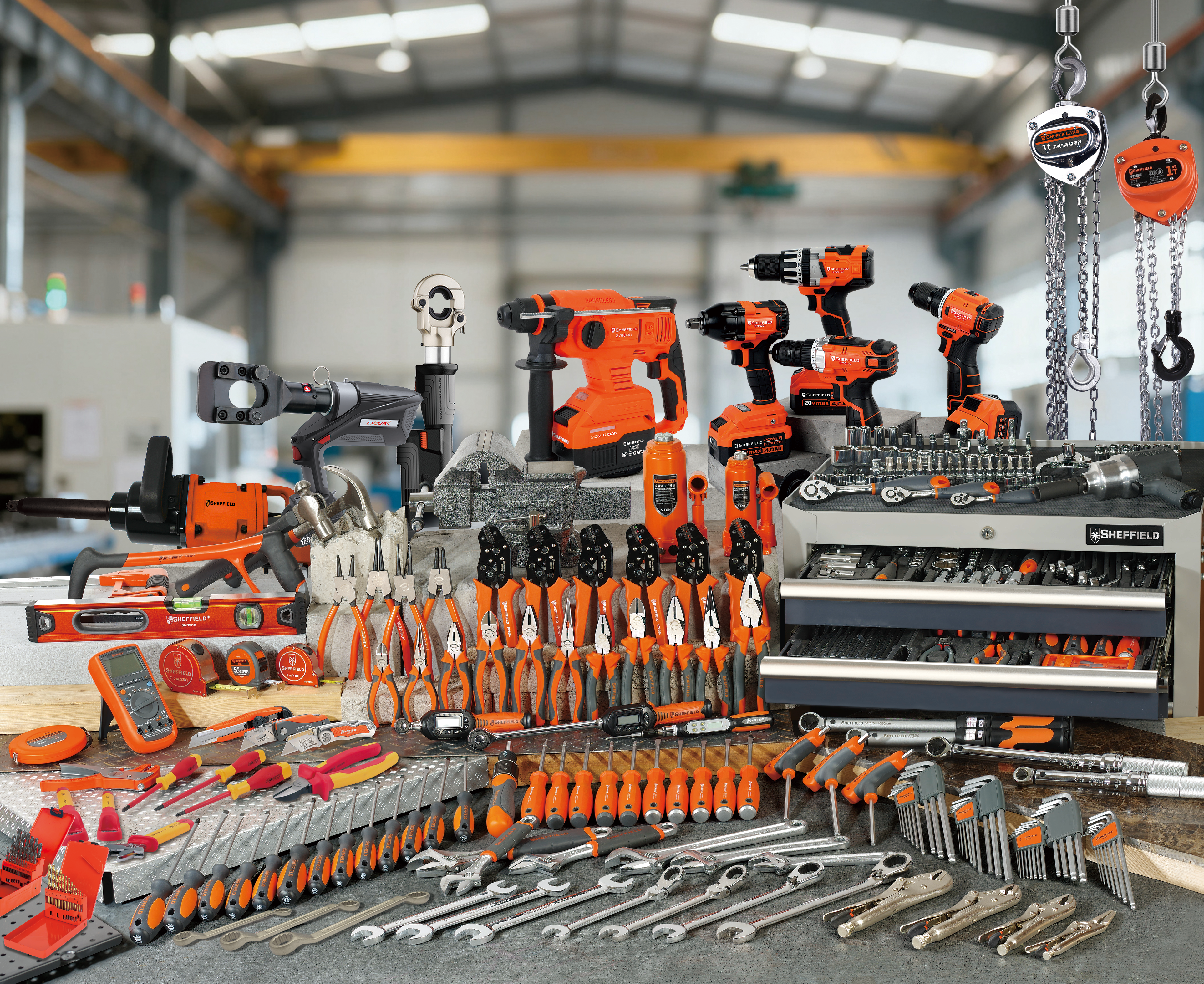 旗下工具品牌SHEFFIELD鋼盾定位為工業(yè)級工具,產(chǎn)品線涵蓋四大系列:五金工具系列、智能及環(huán)保系列、工業(yè)存儲系列、勞保耗材類系列,二十大類4000余款產(chǎn)品,廣泛應用于能源礦產(chǎn)、工程機械、軌道交通、汽修汽配、電力電工、航空航天等眾多行業(yè)。